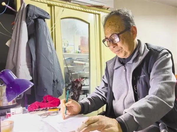 11月26日,辛世武在家中绘制设计图纸。